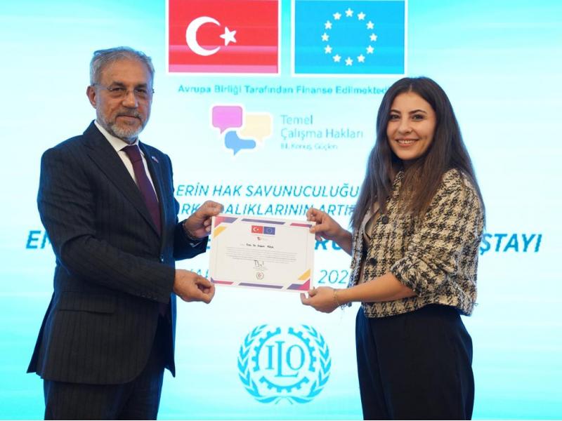 ILO’nun hak temelli sivil toplum kuruluşlarını destekleme yönünde bir yaklaşım geliştirdiğini vurgulayan Dönmez, “Bizim için sivil toplum kuruluşlarının güçlü bir kapasiteye sahip olmaları ve bağımsız olması gibi çalıştığı konular önemliydi. HAK EMEK DER’in de üzerinde çalıştığı konu da bizim için oldukça önemli. Daha geniş bir perspektiften konuya odaklanmış olması, HAK EMEK DER’in de çabasını bu noktada önemli bir duruma getiriyor” dedi.