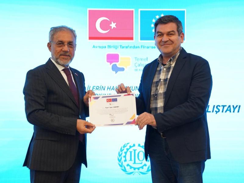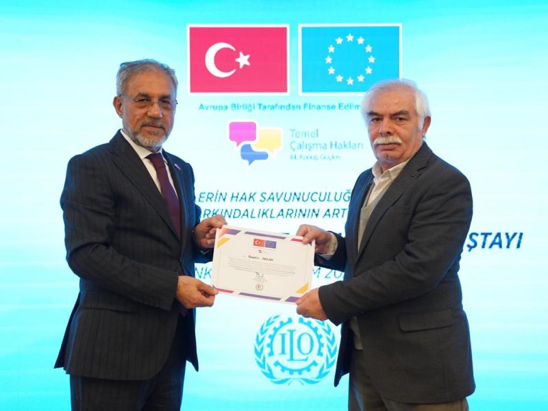 Sosyal tarafları içeren gruplarla birlikte hak temelli çalışmalar yürüten sivil toplum kuruluşlarına destek sağlandığını vurgulayan ILO Türkiye Proje Koordinatörü Emre Dönmez, “Biz ILO Türkiye Ofisi olarak bu kıymetli projeyi hibe programı ile destekliyoruz. Bu program geçen yıl başladı; 300’den fazla başvuru oldu, 55 tanesine destek sağlayabildik. Bunların arasında HAK EMEK DER gönüllülükle seçtiğimiz sivil toplum kuruluşlarından bir tanesiydi” ifadelerini kullandı.