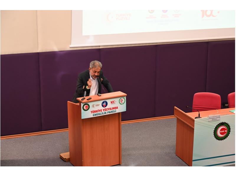 “Türkiye Yüzyılında Emeklilik” Panelinde; alanında deneyimli akademisyen, bürokrat ve sendikacılar çeşitli konu başlıklarında sunumlar gerçekleştirdi. Panel kapsamında Türkiye Yüzyılında mevcut emeklilik sisteminde yaşanan sorunlar akademi, sendika ve bürokrasi bakış açısıyla çözüm odaklı bir şekilde ele alındı.