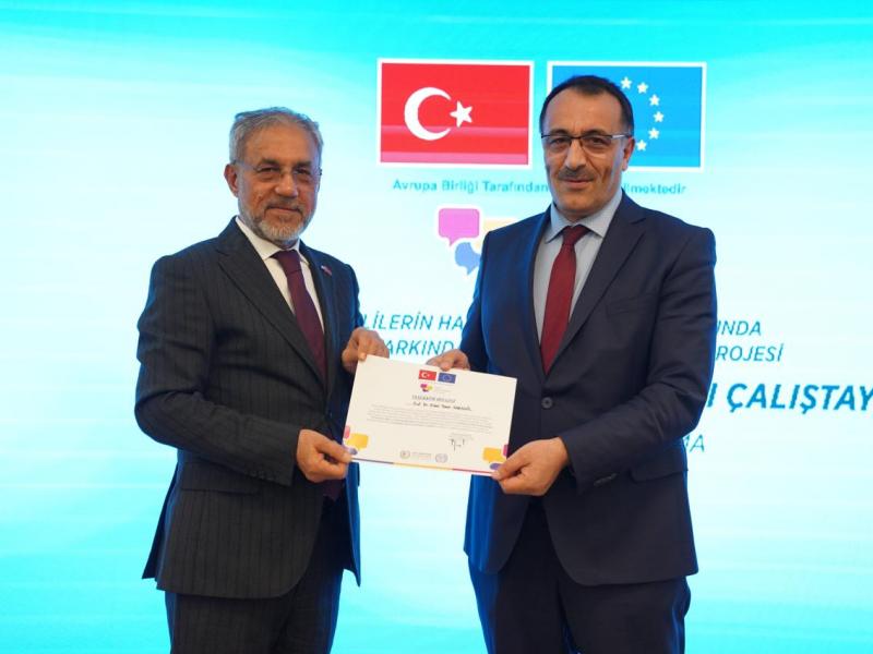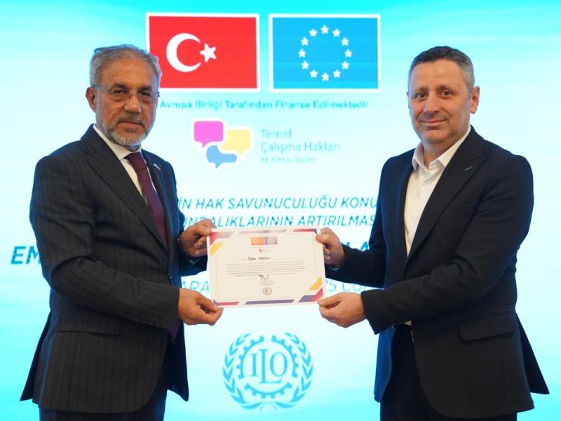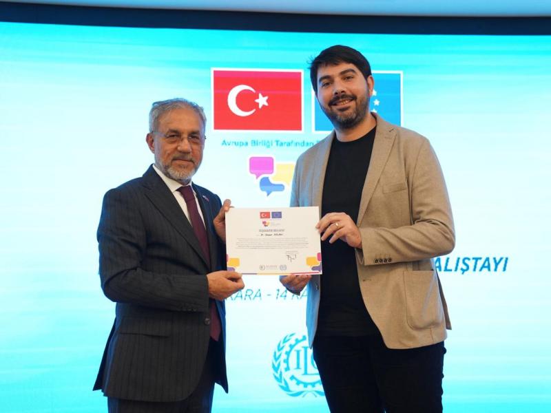 Sosyal tarafları içeren gruplarla birlikte hak temelli çalışmalar yürüten sivil toplum kuruluşlarına destek sağlandığını vurgulayan ILO Türkiye Proje Koordinatörü Emre Dönmez, “Biz ILO Türkiye Ofisi olarak bu kıymetli projeyi hibe programı ile destekliyoruz. Bu program geçen yıl başladı; 300’den fazla başvuru oldu, 55 tanesine destek sağlayabildik. Bunların arasında HAK EMEK DER gönüllülükle seçtiğimiz sivil toplum kuruluşlarından bir tanesiydi” ifadelerini kullandı.